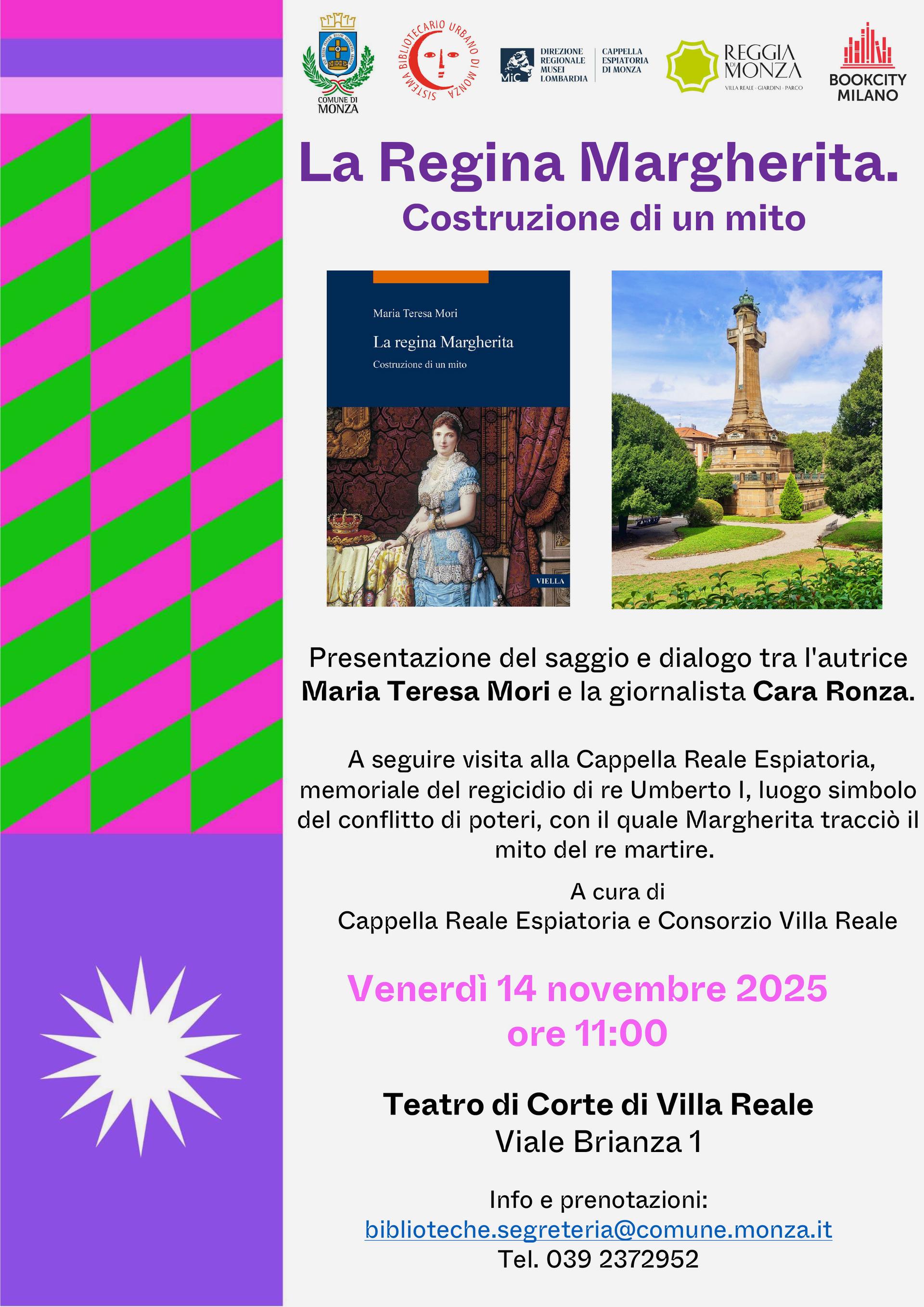 La Villa Reale di Monza ospita un nuovo appuntamento dedicato alla storia e alla memoria di un personaggio femminile straordinario. Venerdì 14 novembre, alle ore 11, al Teatro di Corte, si terrà la presentazione del volume La regina Margherita. Costruzione di un mito, saggio di Maria Teresa Mori, che dialogherà con la giornalista Cara Ronza.