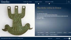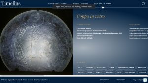 Uscendo dalla timeline, si accede alla pagina dedicata all’opera specifica con sette livelli di informazioni, che permettono all’utente di indagare l’oggetto sotto l’aspetto storico, materiale e di inserirlo in un contesto di eventi salienti sia storici che culturali. All’interno della scheda si possono selezionare le parole chiave per partire in un viaggio di scoperta potenzialmente infinito. L’esplorazione non si limita soltanto a ripercorrere il tempo ma, attraverso la navigazione della mappa interattiva dei musei della Lombardia, ci proietta nello spazio.